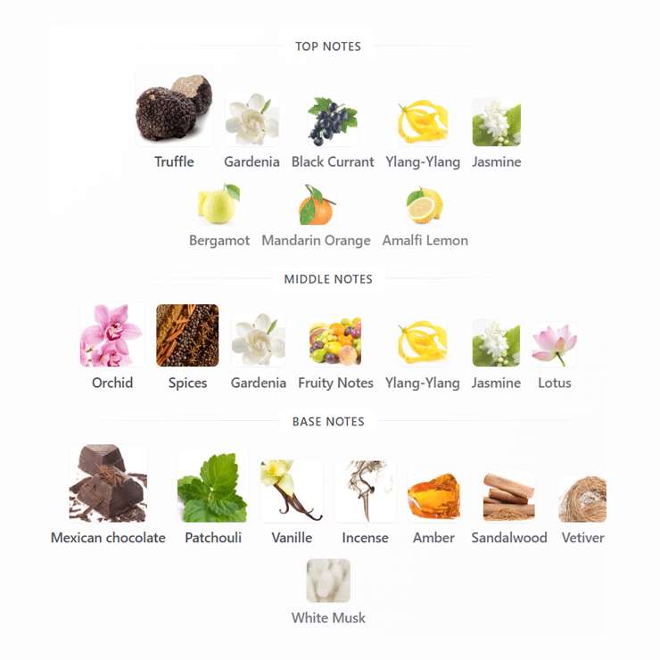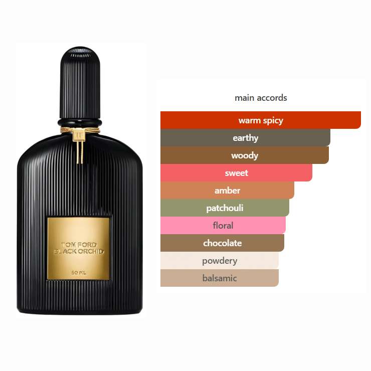 Black Orchid by Tom Ford is a Oriental Floral fragrance for women. Black Orchid was launched in 2006. Black Orchid was created by David Apel and Pierre Negrin. Top notes are Truffle, Gardenia, Black Currant, Ylang-Ylang, Jasmine, Bergamot, Mandarin Orange and Amalfi Lemon; middle notes are Orchid, Spices, Gardenia, Fruity Notes, Ylang-Ylang, Jasmine and Lotus; base notes are Mexican chocolate, Patchouli, Vanille, Incense, Amber, Sandalwood, Vetiver and White Musk.
